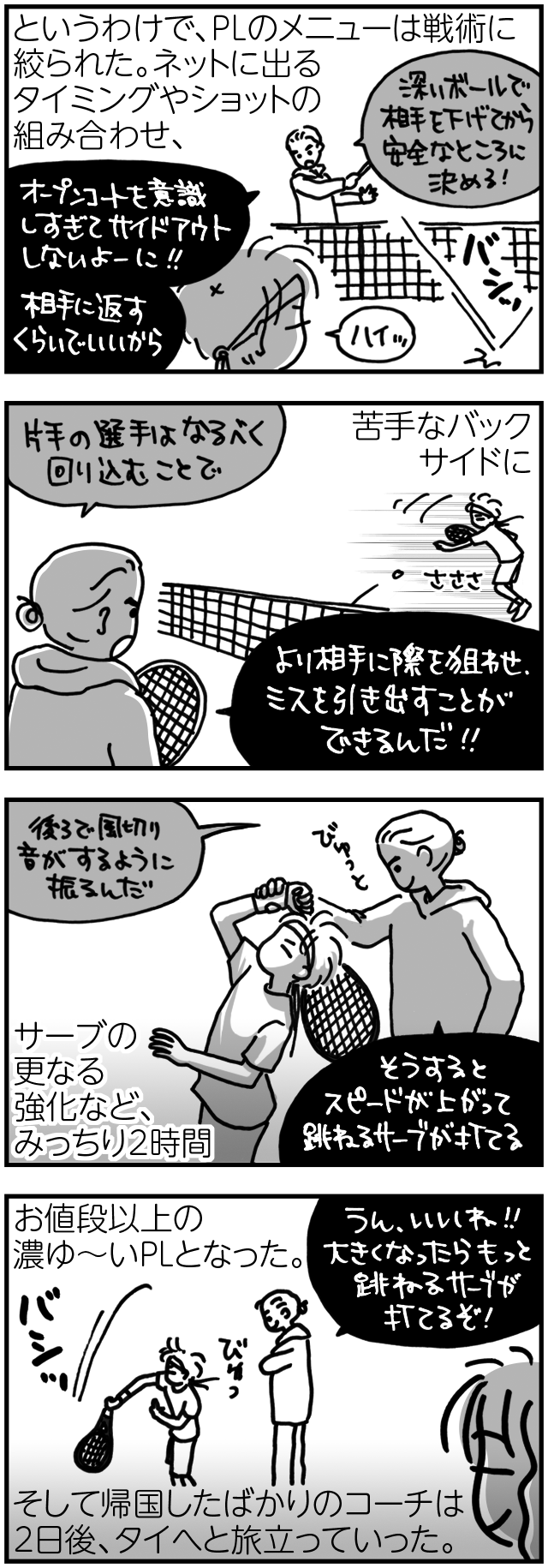 完全にプライベートなレッスン② 〜戦術編〜【テニ厨/Game.398】 2022年05月06日 カテゴリ:レッスンジュニアプレイヤーズ時代〈11歳〉 当然のことながら、やっぱり聞いていてなるほどと思うことばかり。まさにオールラウンダーを目指すずう用の徹底的に点を取るためのレッスンだった。2時間分、盛りだくさんの内容のうちどれくらいずうの頭に残ったかはわからないがきっと何かしら、これからのテニスに活かしていってくれることであろう。レッスン終了後「後ほど感じたことをLINEしますね」と言ってコーチはずうの直近の試合のDVDを持って行ってくれた。鬼のように忙しいだろうに、どれだけ面倒見が良いのだろう?そんな人だからこそいつかまた、成長したずうを見てもらえる日が来たらいいなと思ってしまう母なのである。懐かしいヨーロッパ遠征ではこんな事を習っていました↓ タグ :#レッスン#*他川コーチ#*コーチ
